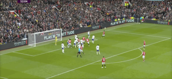 第23分钟,B费右侧角球传中,马奎尔后点头球摆渡,迪亚洛头球接力,被大马丁神勇扑出!